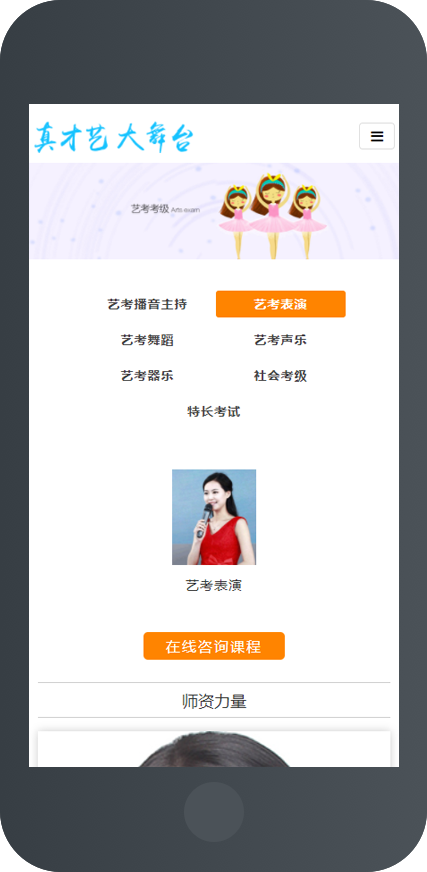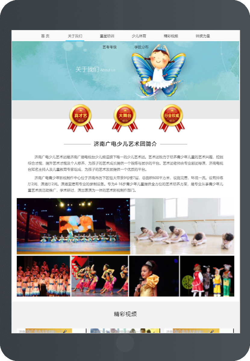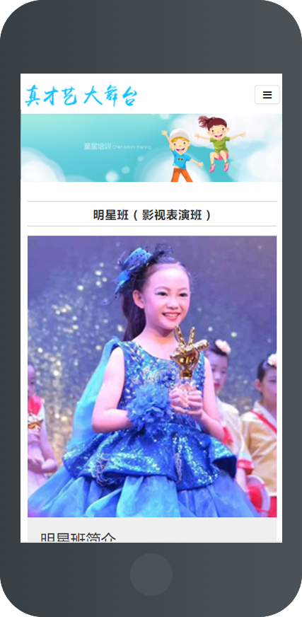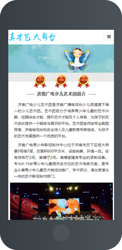 广电少儿艺术团是及少儿舞蹈、播音主持、戏剧表演等一体的综合性培训机构,在移动市场设备应用占比非常之大,我们应用HTML5最新互联网开发技术,综合当前移动互联网用户使用习惯,实现页面的响应式布局,适配不同移动设备的不同尺寸。达到满足更多移动用户访问官网习惯,实现跨屏的多应用,提升企业品牌形象及官网的优秀移动互联的体验。