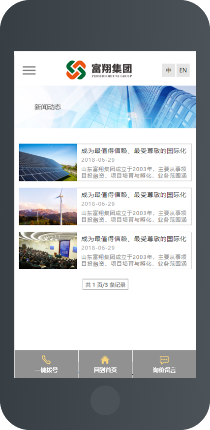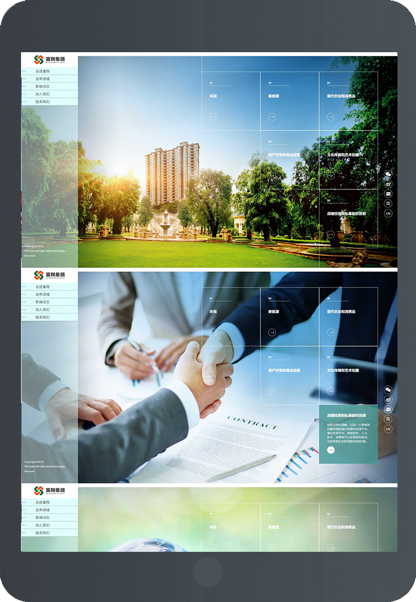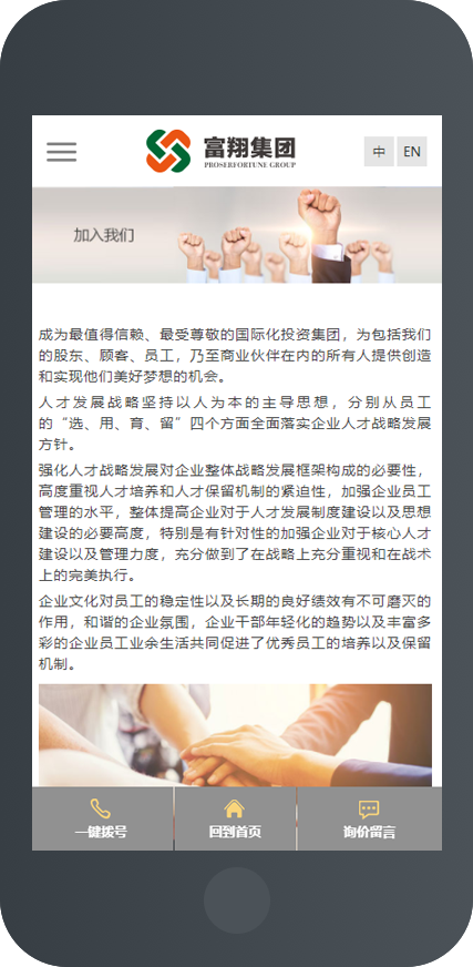 济南奇点网络签约富翔集团,助力富翔建设综合性集团网站,我们采用了整屏展示的方式来展示六大集团产业,视觉效果更佳。在富翔集团手机移动终端的的应用我们必须做到兼容性一流表现,在手机系统与手机浏览器版本不同,与交互移动软件应用方面济南奇点网络更加注重网站设计效果