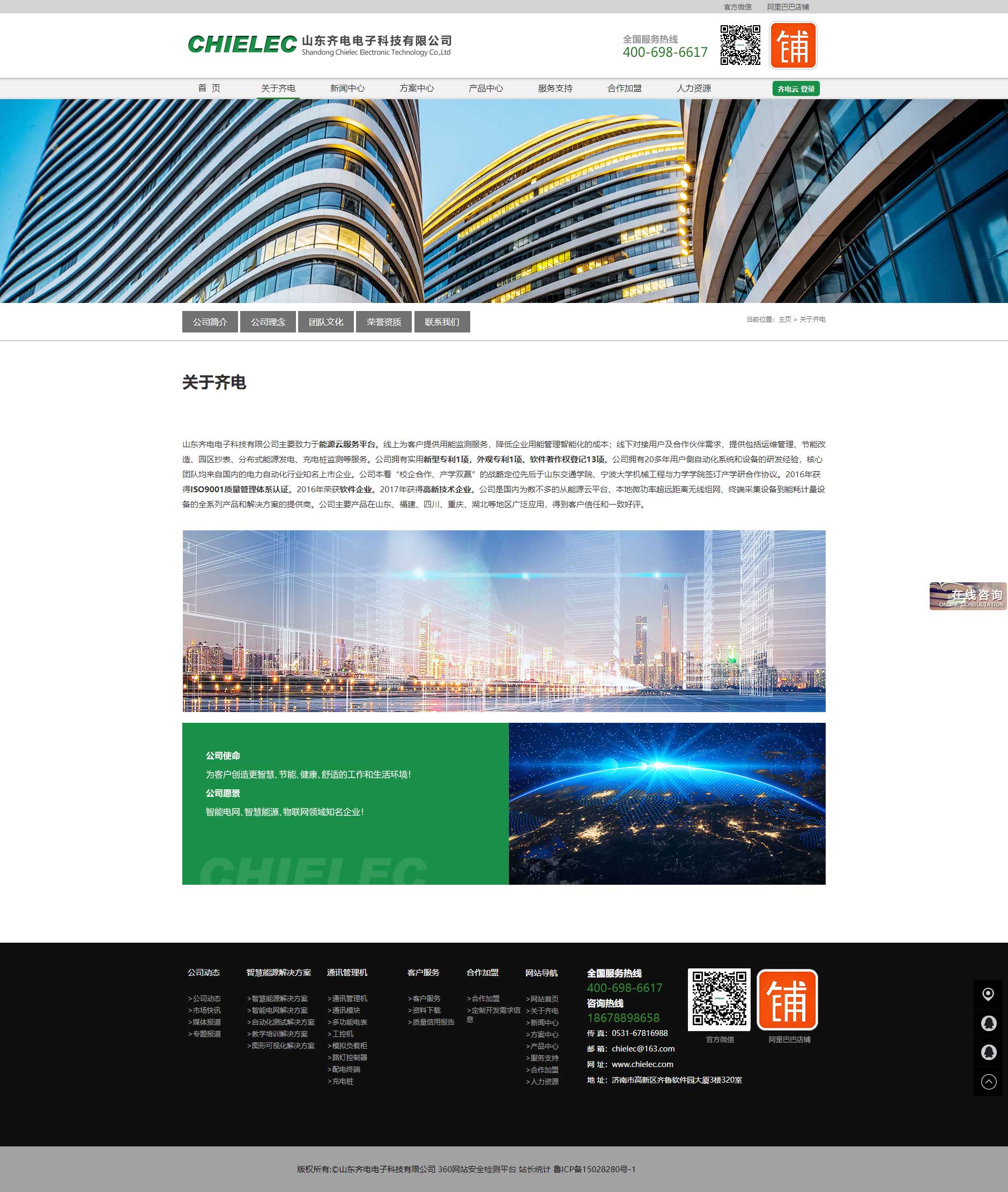 山东齐电电子科技有限公司主要致力于能源云服务平台。线上为客户提供用能监测服务,降低企业用能管理智能化的成本;线下对接用户及合作伙伴需求,提供包括运维管理、节能改造、园区抄表、分布式能源发电、充电桩监测等服务。公司拥有实用新型专利1项,外观专利1项、软件著作权登记13项。公司拥有20多年用户侧自动化系统和设备的研发经验,核心团队均来自国内的电力自动化行业知名上市企业。公司本着“校企合作、产学双赢”的战略定位先后于山东交通学院、宁波大学机械工程与力学学院签订产学研合作协议。2016年获得ISO9001质量管理体系认证。2016年荣获软件企业。2017年获得高新技术企业。公司是国内为数不多的从能源云平台、本地微功率超远距离无线组网、终端采集设备到能耗计量设备的全系列产品和解决方案的提供商。公司主要产品在山东、福建、四川、重庆、湖北等地区广泛应用,得到客户信任和一致好评。