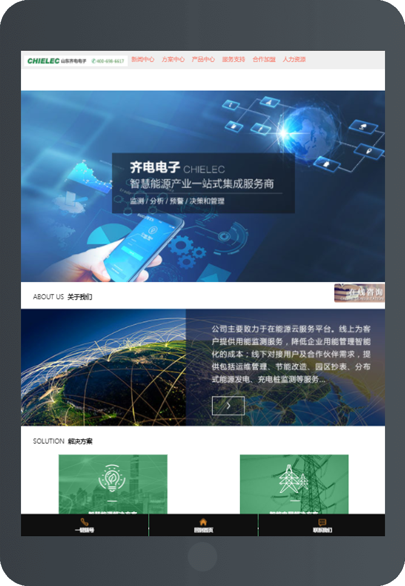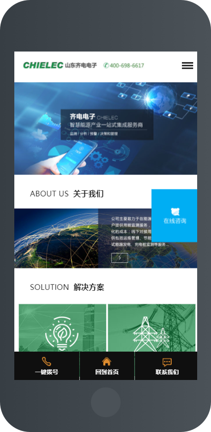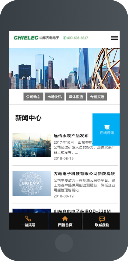 齐电电子为技术开发类电子信息公司,在移动市场设备应用占比非常之大,我们应用HTML5最新互联网开发技术,综合当前移动互联网用户使用习惯,实现页面的响应式布局,适配不同移动设备的不同尺寸。达到满足更多移动用户访问官网习惯,实现跨屏的多应用,提升企业品牌形象及官网的优秀移动互联的体验。