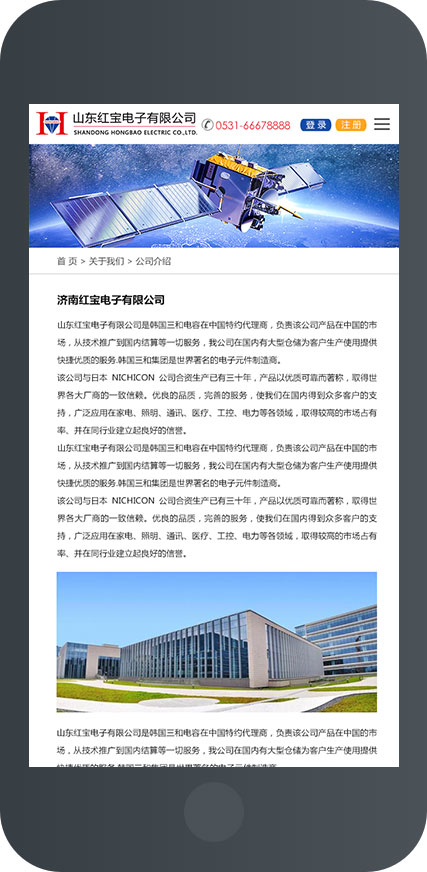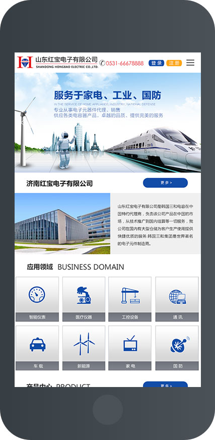 红宝电子为技术开发类电子电器公司,在移动市场设备应用占比非常之大,我们应用HTML5最新互联网开发技术,综合当前移动互联网用户使用习惯,实现页面的响应式布局,适配不同移动设备的不同尺寸。达到满足更多移动用户访问官网习惯,实现跨屏的多应用,提升企业品牌形象及官网的优秀移动互联的体验。