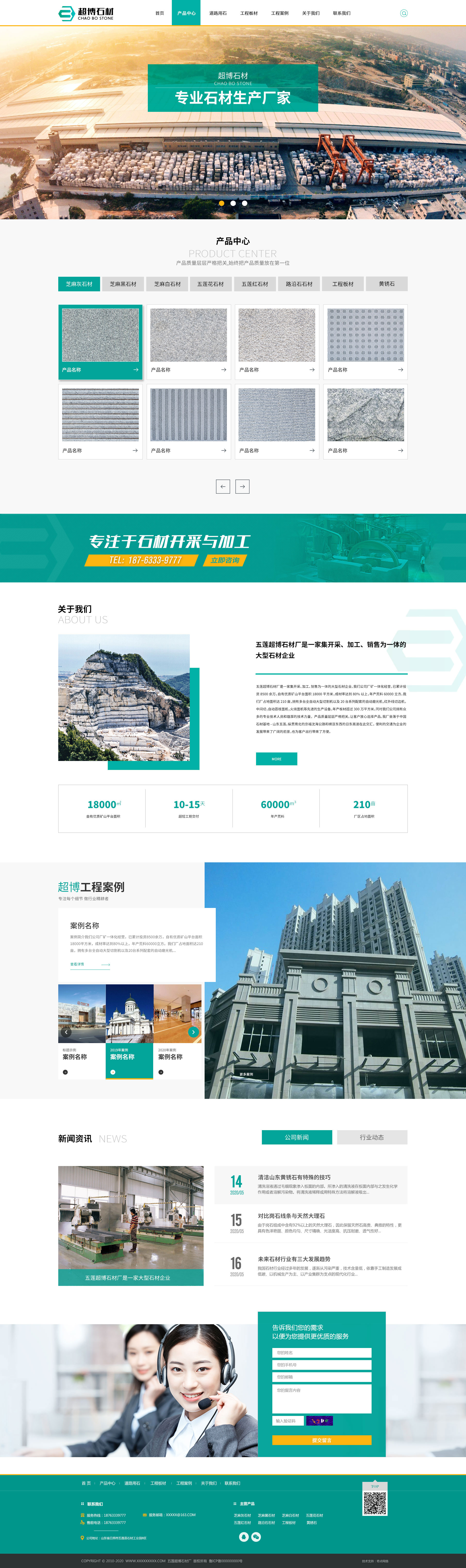 日照超博石材有限公司拥有五莲矿山三座及加工厂三个,主要生产山东花岗岩的品种有:芝麻灰石材、芝麻黑石材、芝麻白石材、五莲花石材、五莲红石材、黄锈石等。可制作各种规格火烧板、光板、荔枝面、自然面等板材及盲道石、剁斧石、蘑菇石、路沿石以及各种道路用石等异形石材,可按客户要求进行磨光、亚光、火烧、机刨、荔枝、蘑菇等各种表面加工。