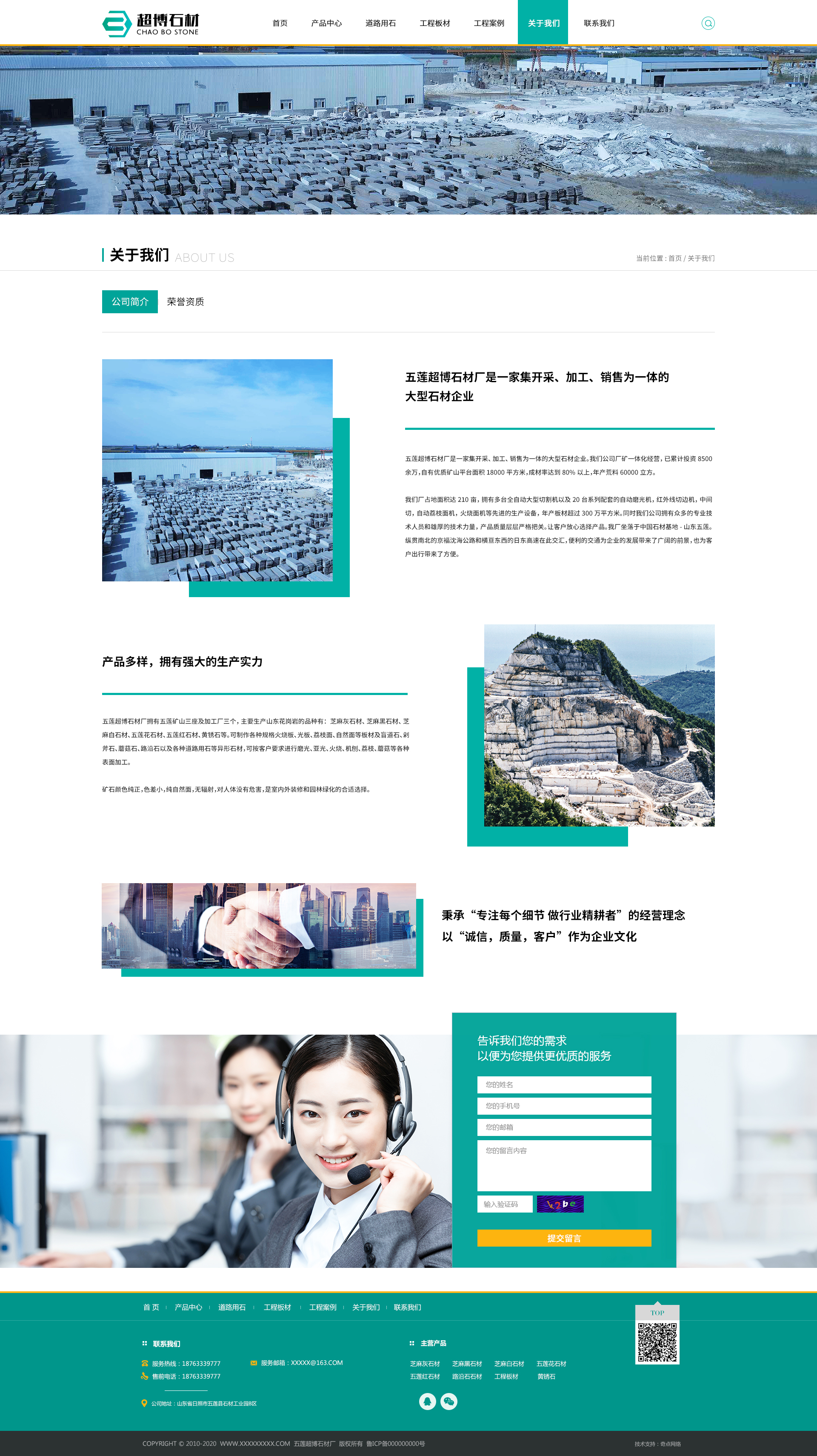 同时我们公司拥有众多的高新技术人员和雄厚的技术力量,产品质量层层严格把关。让客户放心选择产品。我厂坐落于中国石材基地-山东五莲。纵贯南北的京福沈海公路和横亘东西的日东高速在此交汇,便利的交通为企业的发展带来了广阔的前景,也为客户出行带来了方便。