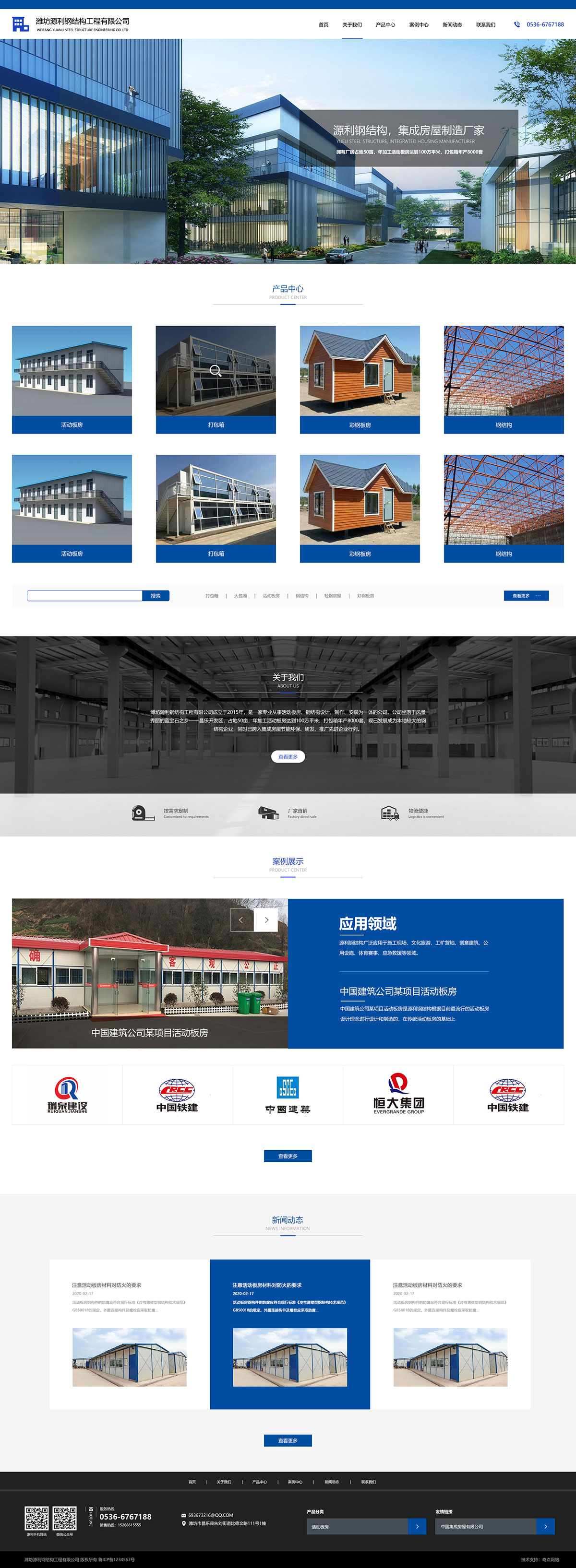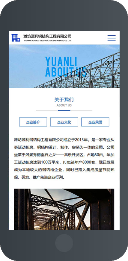 潍坊源利钢结构工程有限公司成立于2015年,是一家专业从事活动板房、钢结构设计、制作、安装为一体的公司。公司坐落于风景秀丽宝石之乡——昌乐开发区,占地50亩,年加工活动板房达到100万平米,打包箱年产8000套,现已发展成为本地较大的钢结构企业,同时已跨入集成房屋节能环保、研发、推广先进企业行列。