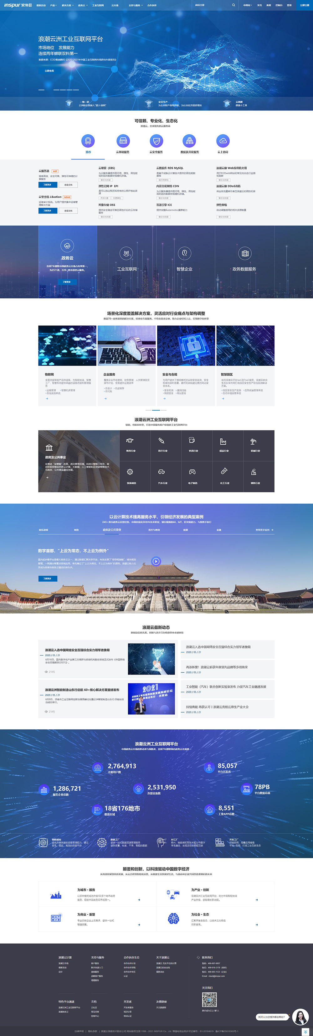 全国部署7大核心节点及69个二级节点,承载着25个省,220+地市和10+部委的政务系统,以及海量企业客户应用在浪潮云平台平稳运行。