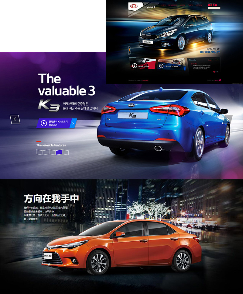 首先从汽车类Banner图开始说起吧!因为这算是一大类,如:“汽车、奢侈品、高级音响……”甚至是模特、演员相关的设计原理也大都如此,就是需要宣传推广的产品本身忒漂亮。