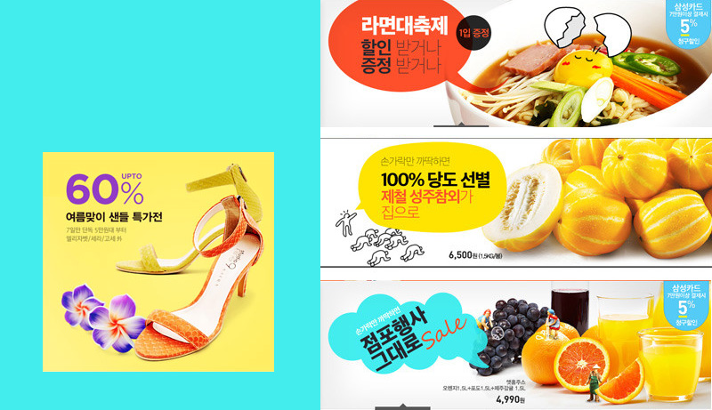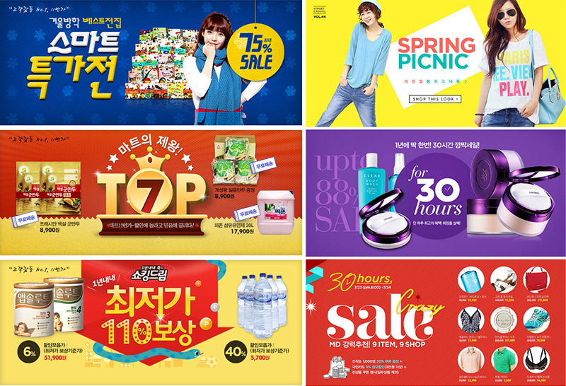 韩国也是有暴力型促销Banner出现的,不过相对比还是清晰些,这里还要说下天猫官方设计,现在的设计也都是很赞了,本人也是经常看的内心惊叹( 这个马屁我觉得拍的蛮好(✿◡‿◡) )!